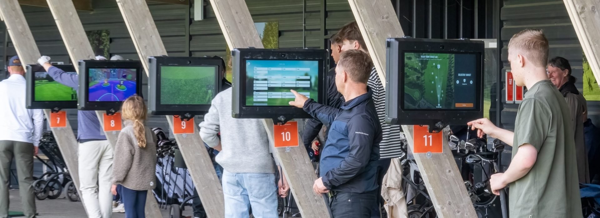 Auf unserer Driving Range haben wir 14 überdachte Plätze, an denen sich Bildschirme befinden.